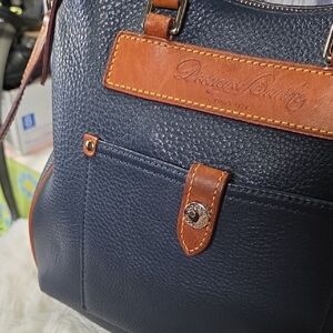 Dooney & Bourke Blue and Tan Pebbled Leather Shoulder Bag