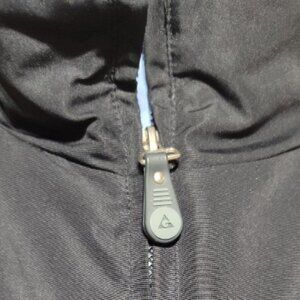 Clean smoke free home. This jacket is very well mad and in great condition. If it was my size, I would have kept it. It has buttons and some sort of snitch on the bottom inside to make it squinch up if you want. I have never bought a Gerry jacket before, but now I am looking for one in my size because of how well made this one is.