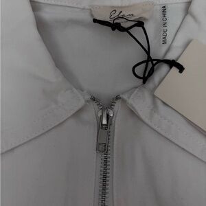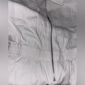 Elan NWT Love Match Denim Jumpsuit Off White Sleeveless Lightweight will elevate your wardrobe to chic Features a classic collar and zip front closure with silver hardware and top front and back pockets with side welt pockets all functional with an elastic band waist making this look flattering and comfortable Perfect for any occasion, it offers both comfort and style.