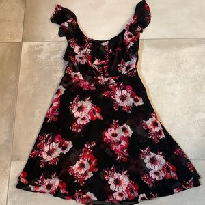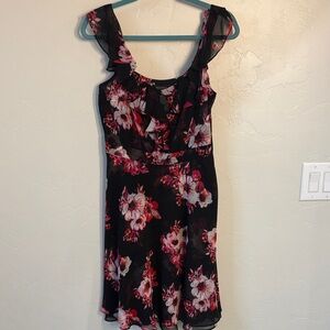 White House Black Market Black and Pink Floral Mini Dress