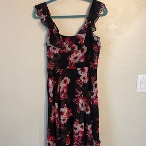 Chic and feminine White House Black Market dress with vibrant floral pattern. Features ruffled neckline and fit and flare design. Comfortable, flowy and in excellent condition. Side zip.