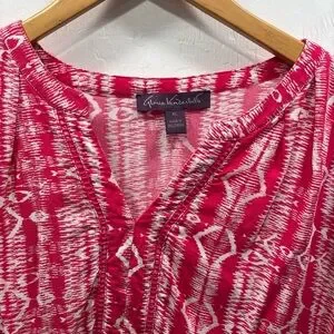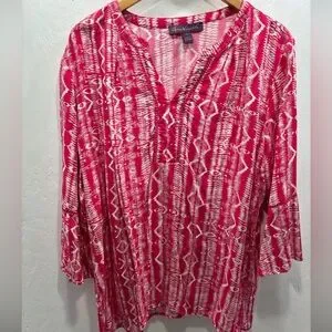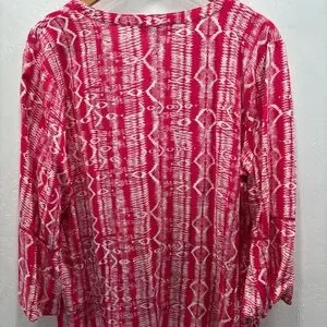 Gloria Vanderbilt V Neck Fushia and White Flowy Boho Embroidered Blouse size XL. Vibrant Pink and white blouse with unique boho pattern. Lightweight and stylish. Ideal for casual wear.