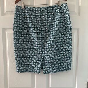 Ann Taylor Factory Blue & White Geometric Pencil Skirt – Knee‑Length, Size 12