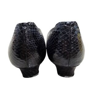 Vtg Joyce Black Snake Embossed Leather Pointed Toe Heels Pumps Womens Size 7M