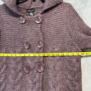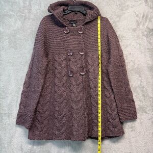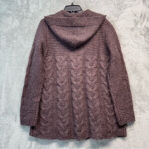 BCBG MaxAzria Plum Wool Blend Hooded Button Chunky Fisherman Sweater Size XL