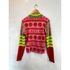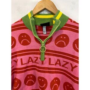 Lazy Oaf Zip-Neck Pullover Jumper Sweater Women's Size US 10 Pink Red Green