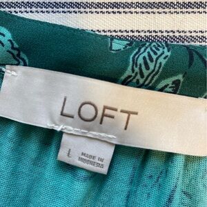 LOFT - Soft Green/Teal Floral Popover Blouse with Smocked Sleeves, Size Large