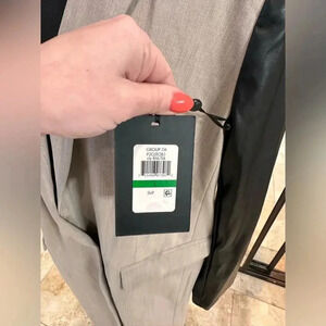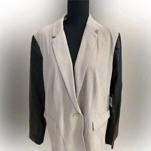 NEW- NWT! DKNY Mixed Media Faux Leather Sleeve Longline Jacket