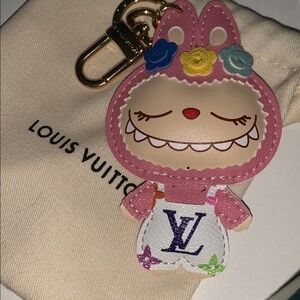 Upcycled Labubu purse/bag charm keychain. The most adorable with flowers on her head! Can’t keep them in stock. Hang her on anything to make heads spin. Comes with Lv bag. Follow my closet for lots of similiar unique stuff at great prices. Thanks