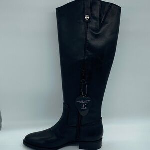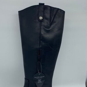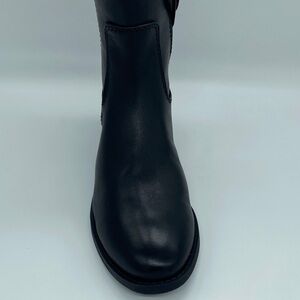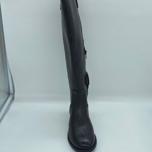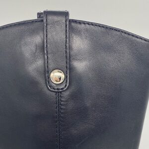 Elegant black leather knee-high boots perfect for any occasion. Stylish and versatile, these boots are a must-have addition to your wardrobe.