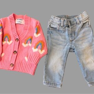 Baby Girl 5-Piece Clothing Bundle | 3 Hoodies, 1 Cardigan, & 1 Jeans | 6-12 Mo.