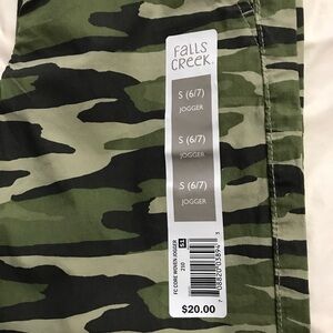 Falls Creek Camo Green Kids Jogger Pants S (6/7) NWT Comfortable camo joggers for kids. Elastic waistband and cuffs. 2 front and 1 back pocket.