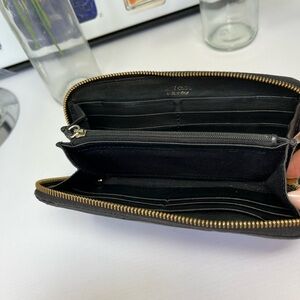 Stylish black wallet adorned with silver star studs. Features a secure zip closure.