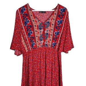 Pretty Garden red boho flare sleeved paisley floral tiered maxi dress Large