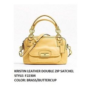 Coach Kristin F22304 Yellow Leather Satchel Double Zip Crossbody Bag