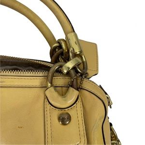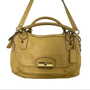 Authentic Coach Kristin satchel style F22304 in yellow leather with brass hardware and removable shoulder strap.