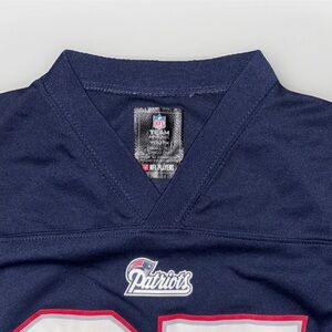 The product is a youth Small New England Patriots Rob Gronkowski NFL jersey in blue. This officially licensed jersey is perfect for young fans of the National Football League and the New England Patriots. Made by the NFL brand, this jersey features the iconic team colors and player name, making it a must-have for any young football enthusiast. ‼️ The sewed patch at the bottom right is partially unattached as shown in the listing!