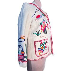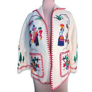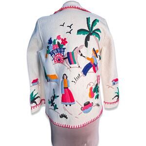 Vintage Hand Embroidered Folk Art Wool Tourist Jacket Mexican Scene Colorful