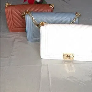 Elevate your style with this elegant quilted chain shoulder bag. Available in white, blue, and brown, this versatile accessory is perfect for any occasion. The chic design and gold-tone chain add a touch of sophistication to your look.