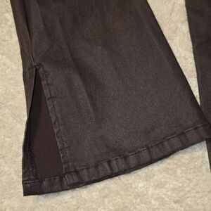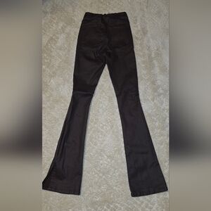Stylish chocolate coated denim flares with a split hem design. Perfect for a chic look. Women's size 0.
