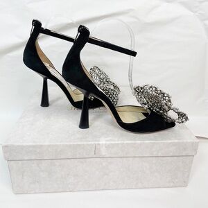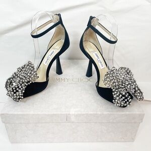 In excellent condition Rare and hard to find Jimmy Choo Mana 100mm Crystal Bow Heels. No missing crystals on the bow. Normal wear at bottom soles.