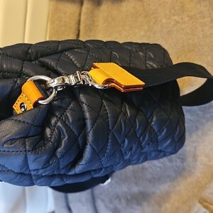 MZWallace Quilted Tote in navy. Includes strap and nylon pouch. Excellent condition! Front and back slip pockets as well as one on each side.