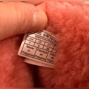 Excellent used condition pair of UGG classic short II leather sheepskin casual winter boots. Women's size 7. They are a beautiful pink blossom color. Minimal wear but note one of the toe boxes has a strange pattern on them. That will likely come out with treatment. See photos for details and condition. Comes from a pet friendly home. Retails for $170.