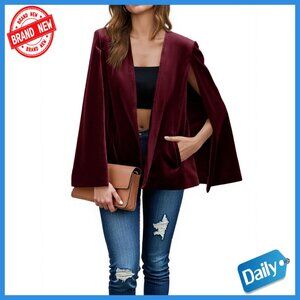 Velvet Cape Blazer Open Front Split Sleeve Jacket Women's Casual Coat