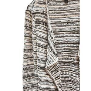 The waterfall open front creates a refined silhouette that moves beautifully with the body, while the classic black, ivory, and cream palette makes it a true wardrobe cornerstone. From office to dinner, travel days to polished casual, this cardigan does it all — no styling effort required.