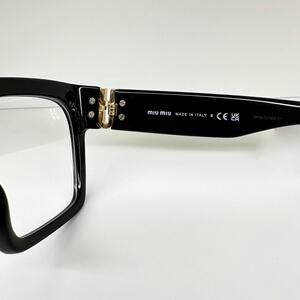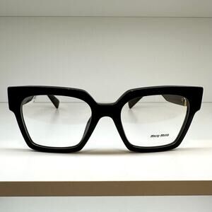 MIU MIU Eyeglasses Glasses New Collection - 100% Authentic! Sale Includes: MIU MIU Box, Case, Polish Cloth, Care Material Brand: MIU MIU Condition: Brand New MIU MIU Eyeglasses - 100% Authentic Item Details * Measurements(mm): Lens/Bridge/Temple 52-19-135 * Frame Color: Black Acetate Front Frame * Lenses Included: Clear Lenses - Rx-able * Square Frame Shape Silhouette * Gold Metal MIU MIU Logo on both temples * Unique Serial Number etched to confirm authenticity * Made In Italy * 100% UVA/UVB Protection * Unisex Eyewear 100% Authentic - 100% Positive Feedback - Trusted Seller! Designer Items Up To 90% Off Retail - Great Gift! 915