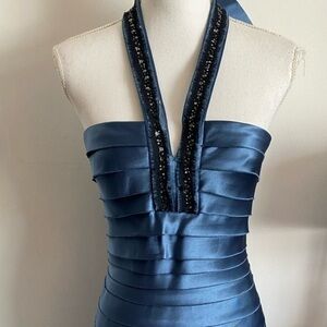 BCBGMaxAzria • Blue Tiered Beaded Neckline Cocktail Dress
