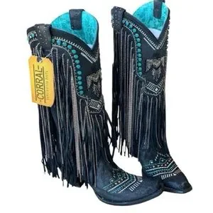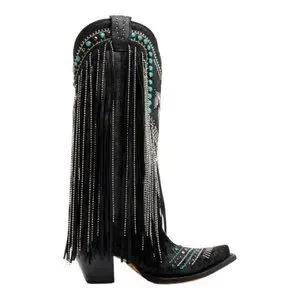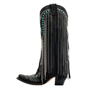 The Corral Women's Embroidered and Crystal Eagle Fringe Western Boots Snip Toe combine traditional Western spirit with intricate embroidery and crystal accents. These boots are designed for the modern cowgirl who isn't afraid to stand out.