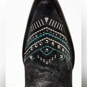 Solid black with embroidery and silver and turquoise-toned studded accents