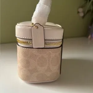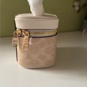 Chic Coach mini bag with a stylish design. Cream top with tan body. Perfect for any occasion.