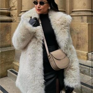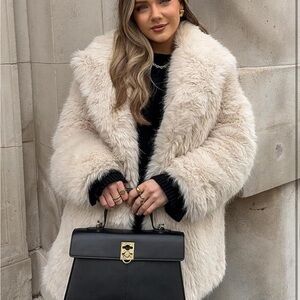 Stay warm and stylish with this elegant cream faux fur coat. Perflined