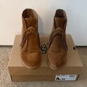 UGG W Corin- Tan Suede Fringe Ankle Boots