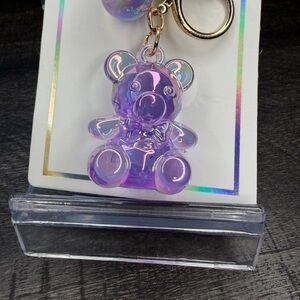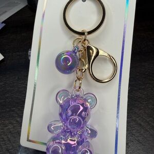 Adorable purple bear keychain with gold accents. Features a cute bear charm and a gold clasp.