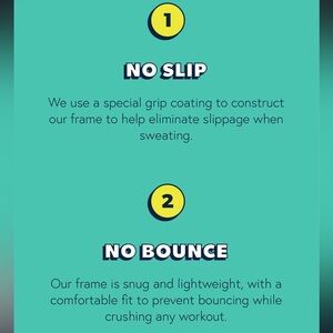NO SLIP: Special grip coating and silicone nose inserts to construct frame to help eliminate slippage when sweating.