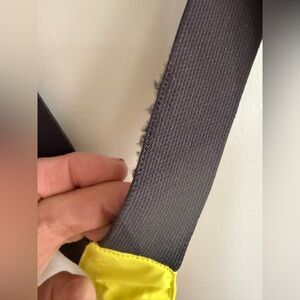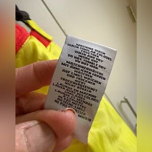 Snow bib is in excellent condition with no stains, holes, snags, or other flaws. Strong Elastic. One of the straps in the back shows some abrasion along one edge. It does not affect the strap itself. See photo. Smoke free home.
