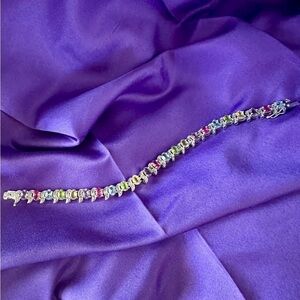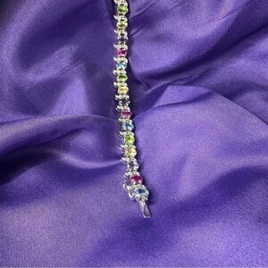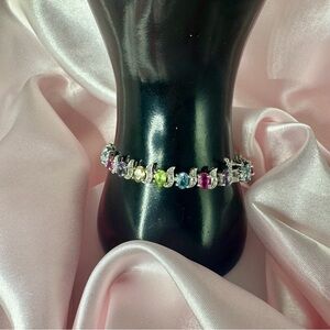 #SterlingSilver #GemstoneBracelet #TennisBracelet #RainbowJewelry #ElegantWristwear #ColorfulJewelry #PreownedStyle #925Jewelry #MulticolorGems #StatementBracelet #GiftForHer