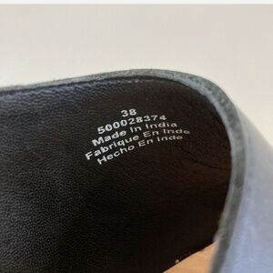 Free People Black Leather Clogs with Tan Wooden Heel