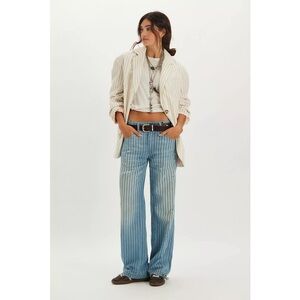 Free People Reggie Oversized White Striped Blazer