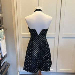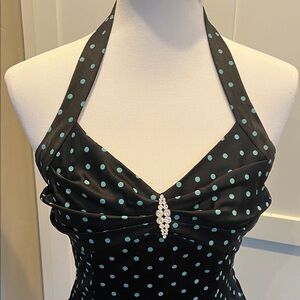Vintage Roberta 80's Black Halter Dress with Light Blue Polka Dots Size 5/6