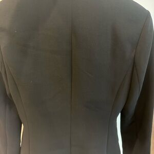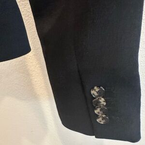 Timeless black blazer with a tailored fit. Features elegant button closure. Perfect for professional and casual wear. Worn only once.