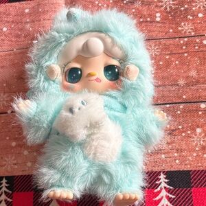 Yooki Warm Bunny keychain pendant plushie. Beautiful blue bunny with a star bag that moves. Eyes are amazing. New in box with card.