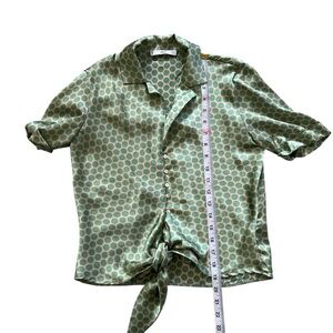 MNG Mango Green Polka Dot Satin Shirt with Shell Buttons Size XS