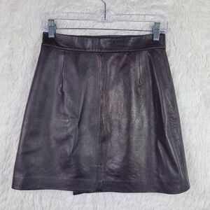 French Connection Sz 4 Brown 100% Sheep Leather Mini Wrap Skirt A-Line Supple