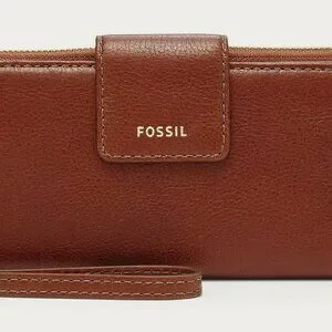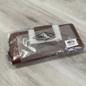 Fossil Madison Zip Clutch Leather Wallet w/ Wristlet Strap - Medium Brown - NWT