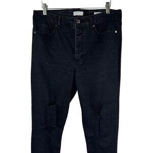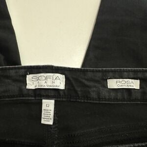 Sofia Vergara Rosa High Rise Curvy Ankle Distressed Button Jeans Black Womens 12