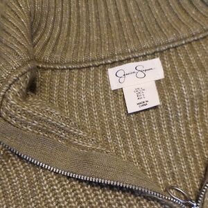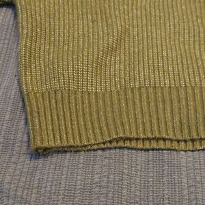 This sweater is brand new without tags. I just took them off in the fall, but i haven't worn it because I got a little big for it. It's a warm and soft knit sweater in a heathered olive and cream colour. The second picture shows the actual colour the best. The fit is a bit boxy and cropped. It's ideal for layering in the cooler weather.